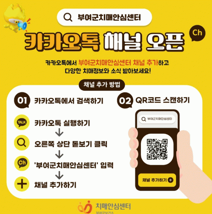 ä³Î ÀÌ¿ëÀº īī¿ÀÅå¿¡¼ ¡®ºÎ¿©±ºÄ¡¸Å¾È½É¼¾ÅÍ¡¯¸¦ °Ë»öÇϰųª QRÄڵ带 ½ºÄµÇÏ¿© ä³ÎÀ» Ãß°¡Çϸé ÀÌ¿ëÇÒ ¼ö ÀÖ´Ù.