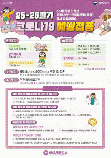 ¿¹¹æÁ¢Á¾Àº ¡ã10¿ù 15ÀϺÎÅÍ 75¼¼ ÀÌ»ó ¡ã10¿ù 20ÀϺÎÅÍ 70~74¼¼ ¡ã10¿ù 22ÀϺÎÅÍ 65~69¼¼ ¿¬·É´ëº°·Î ¼øÂ÷ÀûÀ¸·Î ½Ç½ÃÇÑ´Ù.