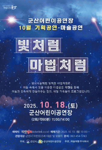 üÇèÇü ¸¶¼ú °ø¿¬ 'ºûó·³ ¸¶¹ýó·³'ÀÇ »çÀü ¿¹¾àÀº 10¿ù 13ÀÏ ¿ÀÀü 10½ÃºÎÅÍ Æ¼ÄϸµÅ©¸¦ ÅëÇØ ÁöÁ¤Á¼®Á¦·Î ÁøÇàµÇ¸ç, 1Àδç ÃÖ´ë 4¸Å±îÁö ¿¹¾à °¡´ÉÇÏ´Ù.