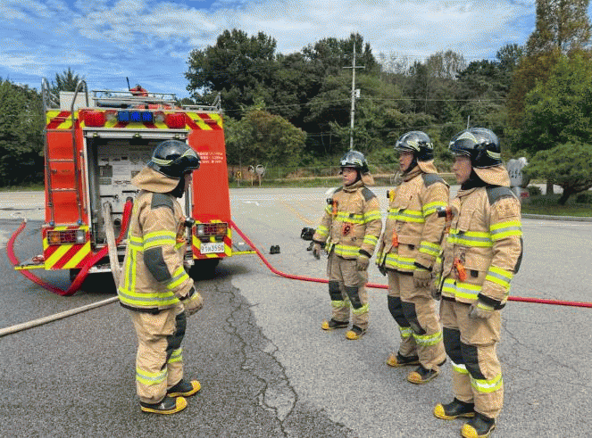 ÈÆ·ÃÀº 4ÀÎÁ¶¹ý, ¼Ò¹æÈ£½ºÀü°³, °ø±âÈ£Èí±â Âø¿ë ÈÆ·Ã µîÀ¸·Î ±¸¼ºµÇ¾î ÀÖÀ¸¸ç, ½ÇÀü ´ëÀÀ·ÂÀ» ³ôÀ̱â À§ÇØ ½ÇÁ¦ ½ÃÇè ±âÁØ¿¡ ¸ÂÃç ÁøÇàµÇ°í ÀÖ´Ù.