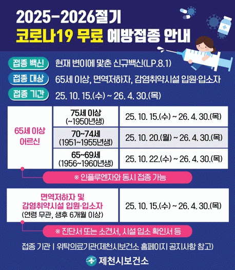 ¡ã75¼¼ ÀÌ»ó ¾î¸£½Å(1950³â»ý±îÁö)°ú ¸é¿ªÀúÇÏÀÚ¡¤°¨¿°Ãë¾à½Ã¼³ ÀÔ¿ø¡¤ÀÔ¼ÒÀÚ´Â 10¿ù 15ÀϺÎÅÍ, ¡ã70~74¼¼ ¾î¸£½Å(1951~1955³â»ý)Àº 10¿ù 20ÀϺÎÅÍ, ¡ã65~69¼¼ ¾î¸£½Å(1956~1960³â»ý)Àº 10¿ù 22ÀϺÎÅÍ ´Ü°èÀûÀ¸·Î ¿¹¹æÁ¢Á¾À» ½Ç½ÃÇÑ´Ù.