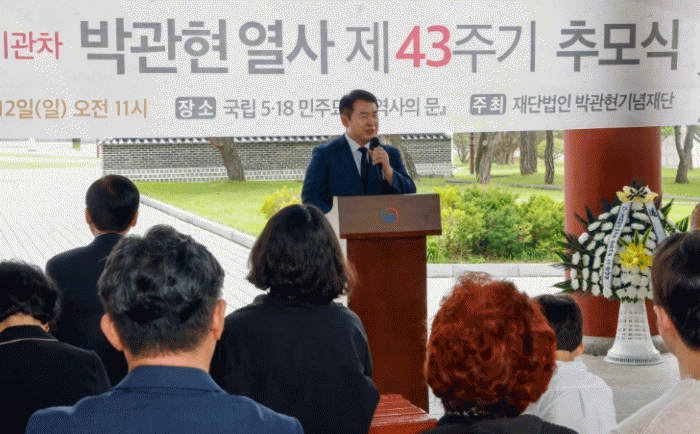 À̳¯ Ã߸ð½Ä¿¡´Â ÀÌÁ¤¼± ±³À°°¨À» ºñ·ÔÇØ, °±âÁ¤ ±¤ÁÖ±¤¿ª½ÃÀå, À±¸ñÇö 5¡¤18±â³äÀç´Ü ÀÌ»çÀå, À̰³È£ ¿µ±¤±º ±¹È¸ÀÇ¿ø, À¯Á· ¹× ½Ã¹Î»çȸ´Üü °ü°èÀÚ µîÀÌ Âü¿©ÇØ ¿»çÀÇ ¼þ°íÇÑ ¶æÀ» ±â·È´Ù.