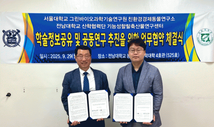 Àü³²´ë »êÇÐÇù·Â´Ü ±â´É¼ºÇÒ¶öÃà»ê¹°¿¬±¸¼¾ÅÍ´Â Áö³ 9¿ù 29ÀÏ ¼¿ï´ëÇб³ ±×¸°¹ÙÀÌ¿À°úÇбâ¼ú¿¬±¸¿ø ģȯ°æ°æÁ¦µ¿¹°¿¬±¸¼Ò¿Í ÇмúÁ¤º¸ °øÀ¯ ¹× °øµ¿¿¬±¸ ÃßÁøÀ» À§ÇÑ ¾÷¹«Çù¾à(MOU)À» ü°áÇß´Ù.