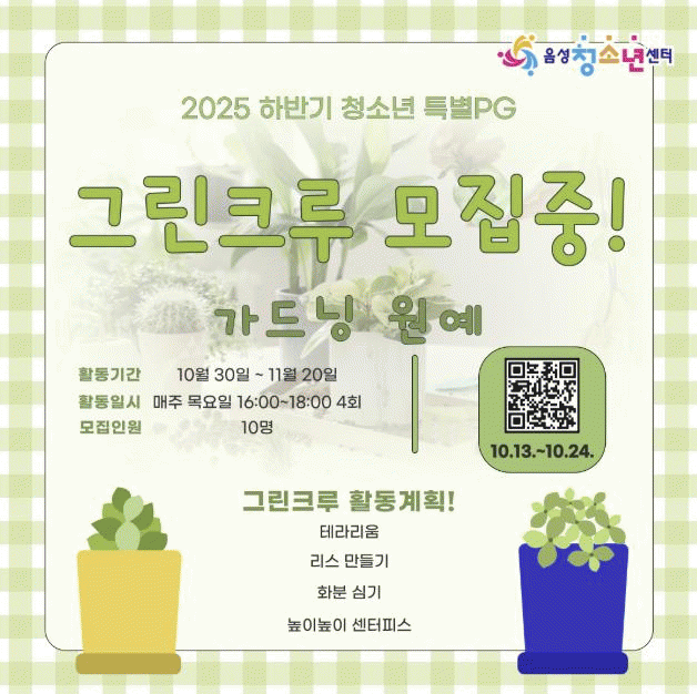 ¸ðÁý ±â°£Àº ÀÌ´Þ 13ÀϺÎÅÍ 24ÀϱîÁöÀ̸ç, ¸ðÁý ÀοøÀº ÃÑ 10¸íÀÌ´Ù. Á¢¼ö´Â À½¼º±º¿¡ °ÅÁÖÇϰí Àִ û¼Ò³âÀ» ´ë»óÀ¸·Î Æ÷½ºÅÍ¿¡ ÀÖ´Â QRÄڵ带 ÅëÇØ ¼±Âø¼øÀ¸·Î ÁøÇàÇÑ´Ù.