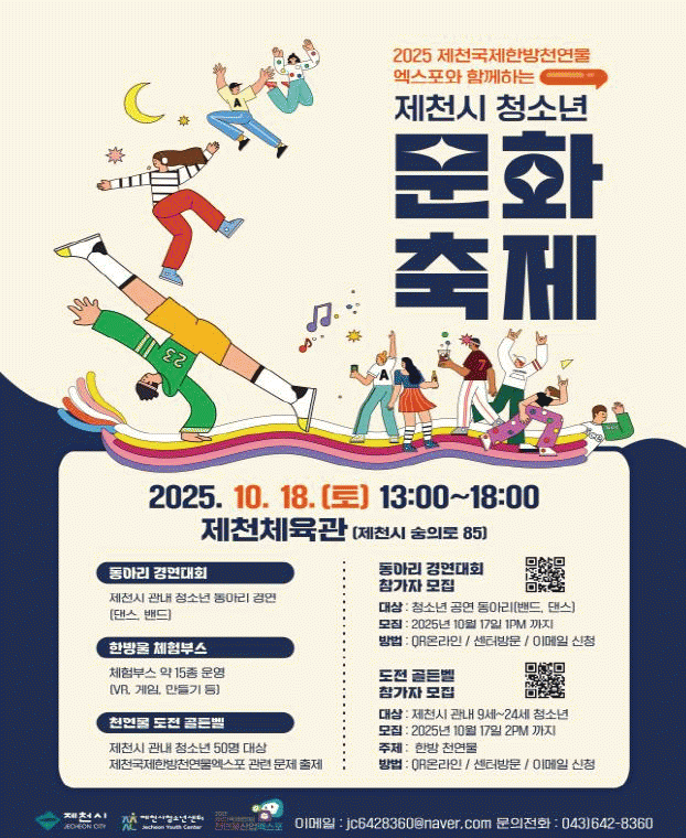 ÃàÁ¦ ÇöÀå¿¡¼´Â ¡â 15°³ÀÇ Ã¼ÇèºÎ½º(MBTI Çâ¼ö ¸¸µé±â, Ä¿ÇÇ¹Ú Å°¸µ ¸¸µé±â µî) ¡âû¼Ò³âµ¿¾Æ¸® °ø¿¬ ¡â¡°2025 Á¦Ãµ±¹Á¦ÇѹæÃµ¿¬¹°»ê¾÷¿¢½ºÆ÷¡±¿Í ¿¬°èµÈ ¹®Á¦·Î ÁøÇàÇÏ´Â µµÀü °ñµçº§ µî ´Ù¾çÇÑ ÇÁ·Î±×·¥ÀÌ ¿î¿µµÉ ¿¹Á¤ÀÌ´Ù.