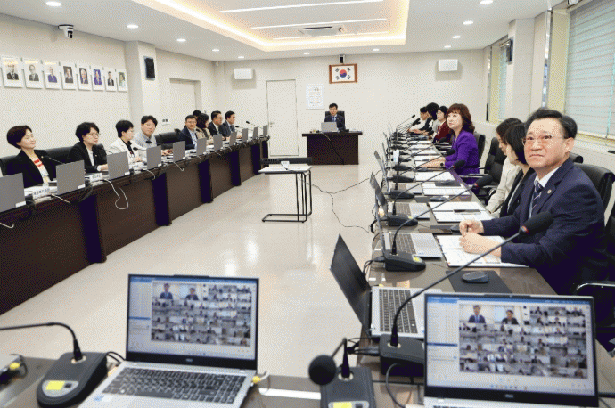 À̳¯ ù È»óȸÀÇ´Â ±³À°°¨°ú Çб³Àå °£ÀÇ Á¤±âÀû ¿Â¶óÀΠȸÀǸ¦ ½ÃµµÇÏ´Â ÀÚ¸®·Î½á, À±°Ç¿µ ±³À°°¨°ú µµ³» Çб³ÀåÀÌ ¿ù 2ȸ ´Ùä¿ò¸ð´ÏÅÍ·Î Á¢¼ÓÇØ Çлý ¸¶À½°Ç° Çö¾ÈÀ» °øÀ¯ÇÏ°í ½Çõ ÀÇÁö¸¦ ´ÙÁö´Â Á¤·Ê ȸÀÇÀÌ´Ù.