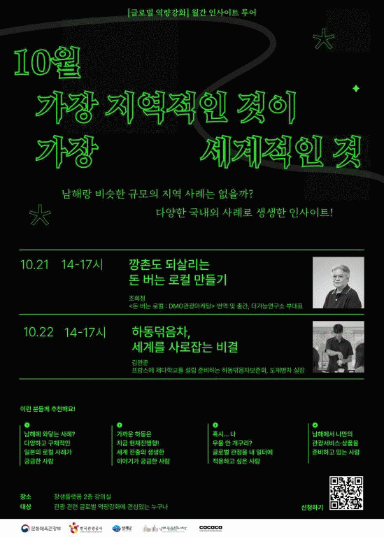 ÇÑÆí, À̹ø Ư°Àº °ü±¤°ú ·ÎÄà ºñÁî´Ï½º µî¿¡ °ü½É ÀÖ´Â ´©±¸³ª Âü¿© °¡´ÉÇÑ ¿ÀÇ °ÀÇ´Ù. QRÄڵ带 ÅëÇÑ »çÀüµî·ÏÀº ¹°·Ð ÇöÀå µî·Ï ¿ª½Ã °¡´ÉÇÏ´Ù.