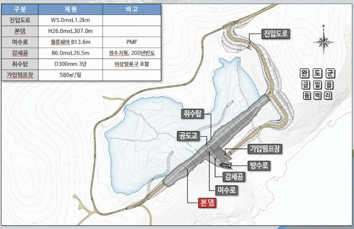 ÃÑ »ç¾÷ºñ 440¾ï ¿øÀ» ÅõÀÔ, ½Ä¼ö Àü¿ë ¼ö¿øÁö 381,000§©, µµ¼ö °ü·Î 6.2km, °¡¾ÐÀå 1°³¼Ò µîÀ» ½Å¼³ÇÑ´Ù.