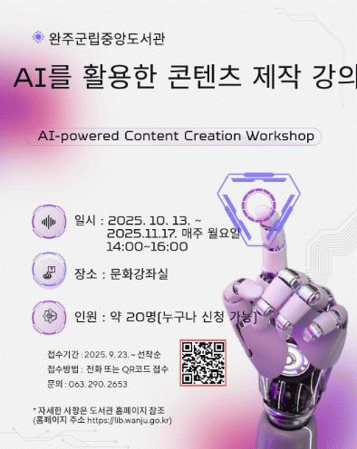 14ÀÏ ¿ÏÁÖ±º¸³Áß¾Óµµ¼°üÀº ³»´Þ 17ÀϱîÁö ¸ÅÁÖ ¿ù¿äÀÏ ¿ÀÈÄ 2½ÃºÎÅÍ 4½Ã±îÁö ¡®AI¸¦ Ȱ¿ëÇÑ ÄÜÅÙÃ÷ Á¦ÀÛ¡¯ °¿¬À» ¿î¿µÇÑ´Ù°í ¹àÇû´Ù.