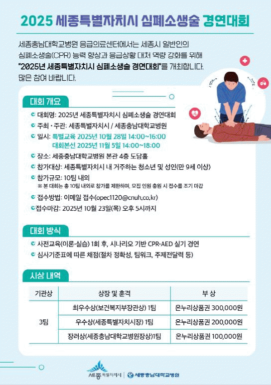 À̹ø ´ëȸ´Â ¡®ÀÀ±ÞÀÇ·á¿¡ °üÇÑ ¹ý·ü¡¯¿¡ µû¶ó ½Ã¿Í ¼¼Á¾Ãæ³²´ëÇб³º´¿øÀÌ °øµ¿À¸·Î ÁÖÃÖ¡¤ÁÖ°üÇϸç, ½Ã¹ÎµéÀÇ ½ÉÆó¼Ò»ý¼ú ¼÷·Ãµµ¸¦ Çâ»ó½Ã۱â À§ÇØ ¸¶·ÃµÆ´Ù.