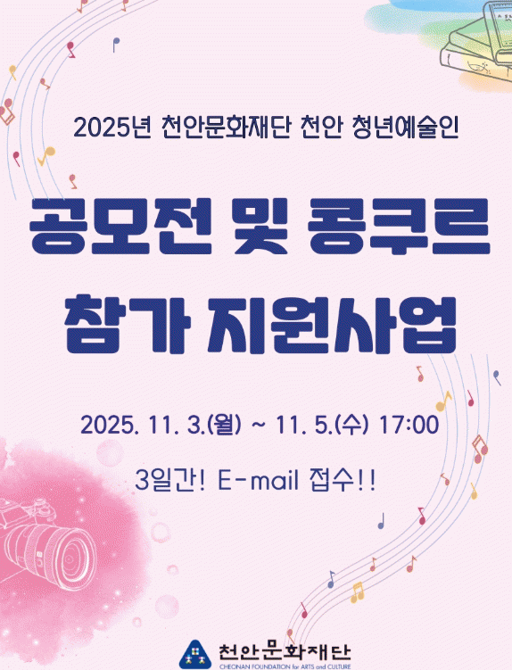 Áö¿ø ´ë»óÀº õ¾È½Ã¿¡ °ÅÁÖÇϰųª õ¾È½Ã ¼ÒÀçÀÇ ´ëÇб³ ¿¹¼úÇаú ÀçÇÐ ¶Ç´Â Á¹¾÷ÇÑ ¸¸ 19¼¼ ÀÌ»ó ¸¸ 39¼¼ ÀÌÇÏÀÇ Ã»³â¿¹¼úÀÎÀ¸·Î, 3³â ÀÌ»ó ¿¹¼úȰµ¿ ½ÇÀûÀÌ ÀÖÀ¸¸é ½ÅûÇÒ ¼ö ÀÖ´Ù.