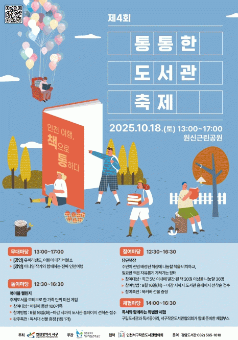 10¿ù 18ÀÏ 13½Ã~17½Ã¿¡ ¿¸®´Â ¡®Á¦4ȸ ÅëÅëÇÑ µµ¼°ü ÃàÁ¦¡¯¿¡¼´Â ¡®ÀÎõ ¿©Çà, Ã¥À¸·Î ÅëÇÏ´Ù¡¯¶ó´Â ÁÖÁ¦·Î ÃÑ 4°³(¹«´ë¸¶´ç, ³îÀ̸¶´ç, Âü¿©¸¶´ç, üÇ踶´ç)ÀÇ Çà»ç¸¦ ÁøÇàÇÑ´Ù.