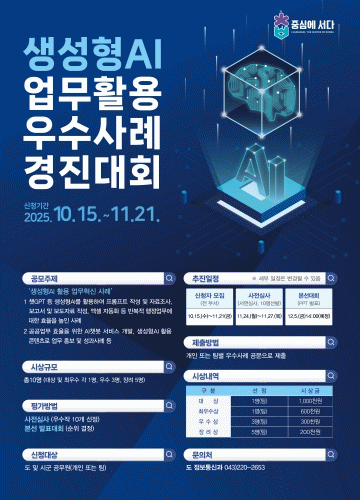 ÃÖº´Èñ ÃæºÏµµ ÇàÁ¤±¹ÀåÀº ¡°À̹ø ´ëȸ´Â °ø¹«¿øµéÀÌ ÀΰøÁö´É(AI)À» Ȱ¿ëÇÑ ¿ì¼ö»ç·Ê¸¦ ÇÔ²² °øÀ¯ÇÔÀ¸·Î½á ½º¸¶Æ®ÇÑ ÇàÁ¤ ¹®È¸¦ È®»êÇÏ´Â °è±â°¡ µÉ °Í¡±À̶ó¸ç, ¡°¾ÕÀ¸·Îµµ ÇàÁ¤¾÷¹« Çõ½ÅÀ» À§ÇØ ´Ù¾çÇÑ ³ë·ÂÀ» À̾°Ú´Ù¡±°í ¸»Çß´Ù.