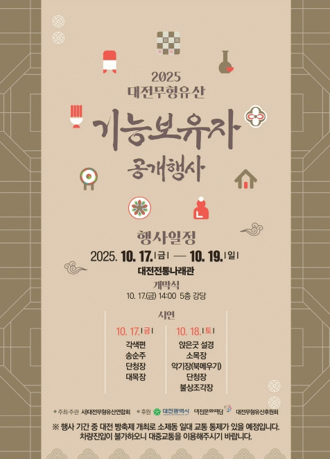 À̹ø ¹«ÇüÀ¯»ê ±â´ÉÁ¾¸ñ °ø°³Çà»ç´Â ´©±¸³ª ¹«·á·Î Âü¼®ÇÒ ¼ö ÀÖÀ¸¸ç, ÀÚ¼¼ÇÑ »çÇ×Àº (»ç)´ëÀü¹«ÇüÀ¯»ê¿¬ÇÕȸ ¶Ç´Â ´ëÀü¹®ÈÀç´Ü ȨÆäÀÌÁö¿¡¼ È®ÀÎ °¡´ÉÇÏ´Ù.