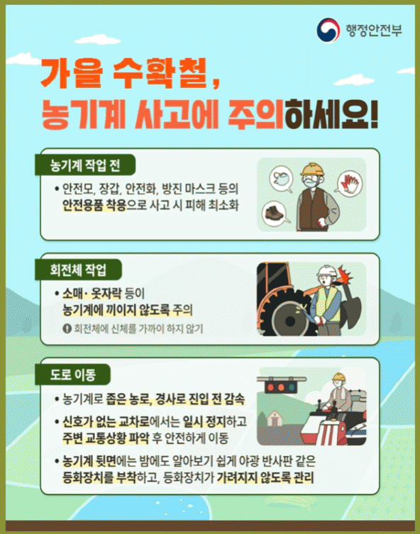 ¸Å³â °¡À»Ã¶¿¡´Â °æ¿î±â¡¤Æ®·¢ÅÍ µî ³ó±â°è »ç¿ëÀÌ ±ÞÁõÇÏ¸é¼ ¾ÈÀüºÎÁÖÀÇ·Î ÀÎÇÑ »ç°í°¡ ºó¹øÇÏ°Ô ¹ß»ýÇϰí ÀÖ´Ù.