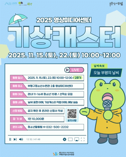 1ȸÂ÷(15ÀÏ)¿¡¼´Â û¼Ò³âµéÀÌ ±â»óij½ºÅͶó´Â Á÷¾÷¿¡ ´ëÇÑ ÀÌÇØ¿Í ³¯¾¾ Ç¥Çö ¹æ¹ý¿¡ ´ëÇØ ¾Ë¾Æº¸´Â ½Ã°£À» °®°í, 2ȸÂ÷(22ÀÏ)¿¡¼´Â °³Àκ°·Î ³¯¾¾ ¿¹º¸¸¦ Á÷Á¢ ½Ç½ÀÇØ º¸°Ô µÈ´Ù.