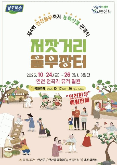 À̹ø ÃàÁ¦´Â ¿¬Ãµ±ºÀÌ ÁÖÃÖÇÏ°í ¿¬ÃµÀ²¹«ÃàÁ¦ ÃßÁøÀ§¿øÈ¸°¡ ÁÖ°üÇϸç, À²¹«¸¦ Áß½ÉÀ¸·Î ÇÑ ³óƯ»ê¹° Á÷°Å·¡ ÀåÅÍ¿Í Ã¼Çè, °ø¿¬ µî ´Ù¾çÇÑ ÇÁ·Î±×·¥À¸·Î Áö¿ª ³ó¾÷ Ȱ¼ºÈ¿Í ÁֹΠÈÇÕÀÇ ÀåÀÌ µÉ ¿¹Á¤ÀÌ´Ù.