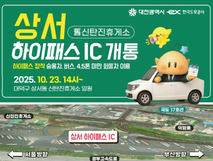 »ó¼ ÇÏÀÌÆÐ½ºIC °³ÅëÀ¸·Î ´ëÀü ºÏºÎ±Ç Áö¿ª ÁֹεéÀÇ °í¼Óµµ·Î ÁøÃâÀÔ ½Ã°£ÀÇ ´ÜÃà°ú ½ÅźÁøIC¿¡ ÁýÁߵǴø ±³Åë·®ÀÌ ºÐ»êµÇ¸é¼, Áö¿ª ³» Á¤Ã¼ ±¸°£ ¿ÏÈ È¿°úµµ ¿¹»óµÈ´Ù.