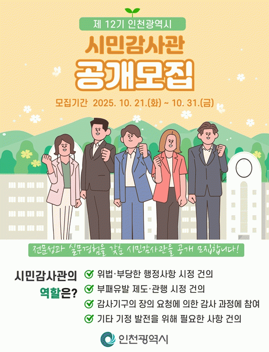 Âü¿©¸¦ Èñ¸ÁÇÏ´Â ½Ã¹ÎÀº ÀÎõ½Ã ´©¸®Áý( ¡®°í½Ã¡¤°ø°í¡¯¿¡¼ ¡®Á¦12±â ÀÎõ±¤¿ª½Ã ½Ã¹Î°¨»ç°ü °ø°³¸ðÁý °ø°í¡¯ °ü·Ã ¼½ÄÀ» ³»·Á¹Þ¾Æ ÀÛ¼ºÇÑ ÈÄ, Áõºù¼·ù µîÀ» ±¸ºñÇØ 10¿ù 21ÀÏ ¿ÀÀü 9½ÃºÎÅÍ 31ÀÏ ¿ÀÈÄ 6½Ã±îÁö ÀüÀÚ¿ìÆí ¶Ç´Â ¿ìÆí(µî±â)À¸·Î Á¢¼öÇÏ¸é µÈ´Ù.