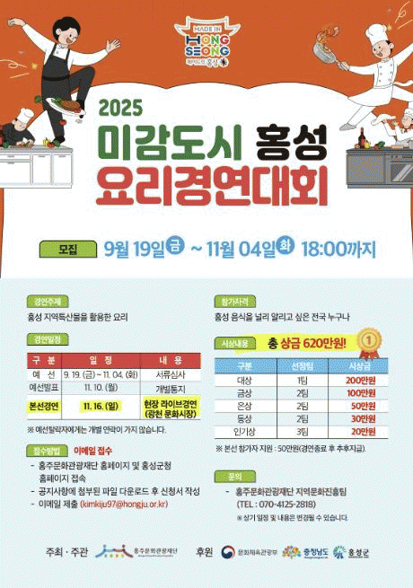 ¡®2025³â ¹Ì°¨µµ½Ã È«¼º ¿ä¸®°æ¿¬´ëȸ¡¯´Â ´ëÇѹα¹ ¹®Èµµ½Ã Á¶¼º»ç¾÷ÀÇ ÀÏȯÀ¸·Î È«¼º±ºÀÇ Æ¯»ö ÀÖ´Â À½½Ä¹®È¿Í ·ÎÄà ·¹½ÃÇǸ¦ ¹ß±¼Çϰí, À̸¦ ±â·ÏÇÏ¿© ÄÜÅÙÃ÷ÈÇÔÀ¸·Î½á ÁÖ¹ÎÁÖµµÀÇ Ã¢ÀÛ°ú ÇâÀ¯ ±â¹ÝÀ» ¸¶·ÃÇÏ´Â µ¥ ¸ñÀûÀÌ ÀÖ´Ù. ³ª¾Æ°¡ ÀÌ·¯ÇÑ ¼º°ú¸¦ Åä´ë·Î Áö¿ª Á¤Ã¼¼º °È¿Í ¹®ÈÀû ÀÚ±à½ÉÀ» Á¦°íÇÏ´Â °ÍÀ» ¸ñÇ¥·Î ÇÑ´Ù.