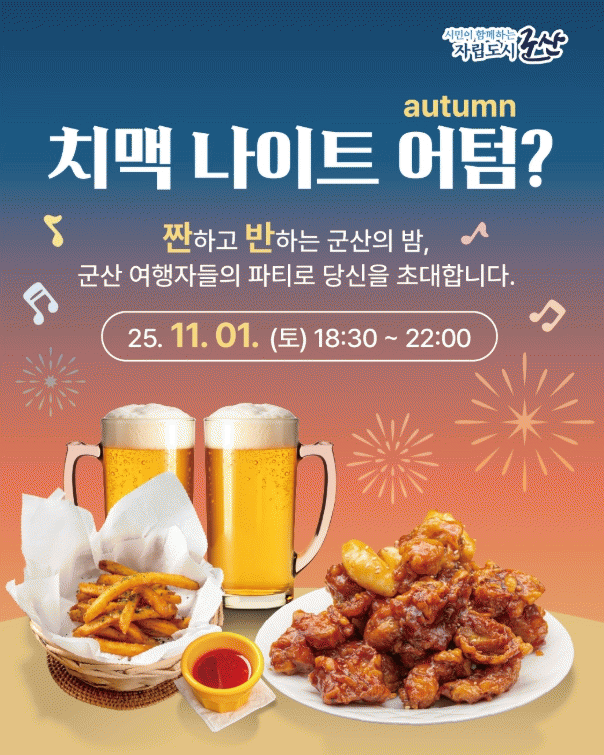 ±º»ê½Ã °ü°èÀÚ´Â ¡°¾ß°£°ü±¤ Ȱ¼ºÈ¿Í ÇÔ²² Áö¿ª°æÁ¦¿¡ Ȱ·ÂÀ» ºÒ¾î³Ö´Â ÀÇ¹Ì ÀÖ´Â Çà»ç·Î ¹ßÀü½Ã۰ڴÙ.¡±¶ó¸ç ¡°±º»êÀÇ °¡À»¹ãÀ» Ưº°ÇÏ°Ô Áñ±æ ¼ö ÀÖ´Â À̹ø Çà»ç¿¡ ¸¹Àº °ü½É°ú Âü¿©¸¦ ¹Ù¶õ´Ù.¡±¶ó°í ÀüÇß´Ù.