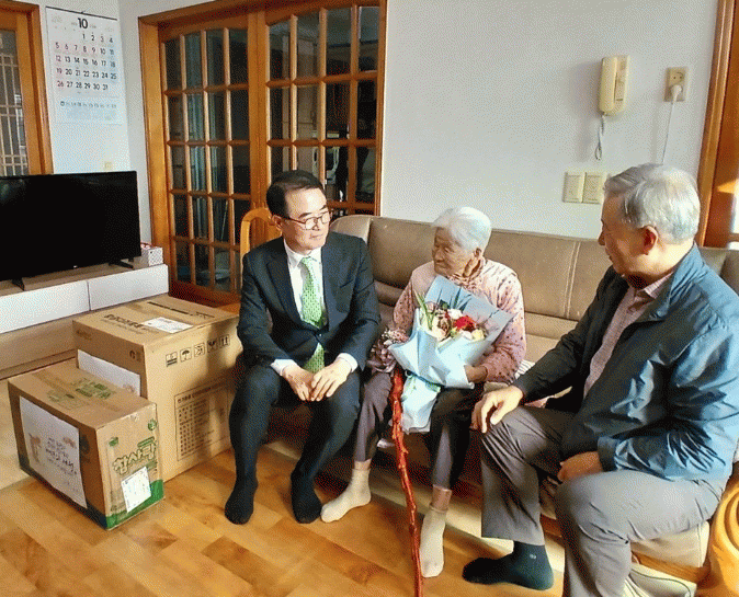 À̳¯ ÀåÃæ³² ³²Çرº¼ö´Â ¹ÚÈ«·Ê ¾î¸£½Å°ú ±è¸·½É ¾î¸£½Å´ìÀ» Á÷Á¢ ¹æ¹®ÇÏ¿© 50¸¸ ¿ø »ó´çÀÇ ¸ÂÃãÇü Àå¼öÃàÇϹ°Ç°°ú Àå¼öÁöÆÎÀÌ(û·ÁÀå)¸¦ Àü´ÞÇß´Ù.