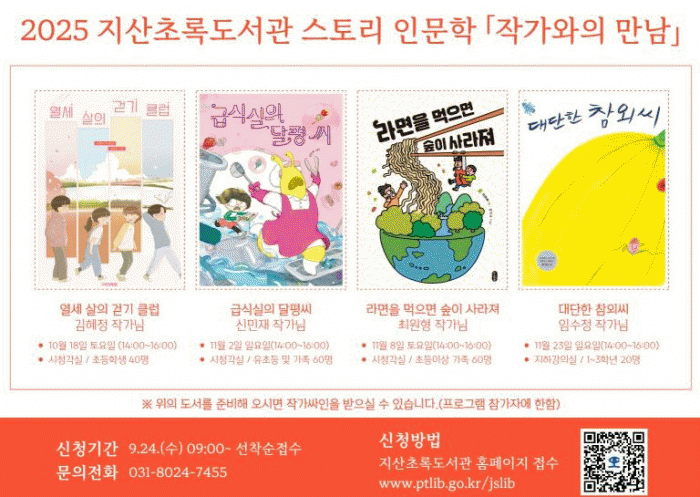 À̹ø ÇÁ·Î±×·¥Àº Àü ¼¼´ë°¡ ÇÔ²² Áñ±æ ¼ö ÀÖ´Â µ¶¼ Àι®ÇÐÀÇ ÀåÀ¸·Î, ÇÁ·Î±×·¥ °ü·Ã ¹®ÀÇ´Â Áö»êÃʷϵµ¼°ü(031-8024-7455)À¸·Î °¡´ÉÇÏ´Ù. (»çÀüÁ¢¼ö ¸¶°¨) µµ¼°ü °ü°èÀÚ´Â ¡°Áö¿ª ¾î¸°À̵éÀÌ ÀÛ°¡¿ÍÀÇ ¸¸³²À» ÅëÇØ Ã¥ÀÇ ¼¼°è¸¦ ÇÑÃþ ±íÀÌ ´À³¢°í âÀÇÀûÀÎ ¿µ°¨À» ¾ò´Â °è±â°¡ µÇ±æ ¹Ù¶õ´Ù¡±¶ó°í ÀüÇß´Ù.