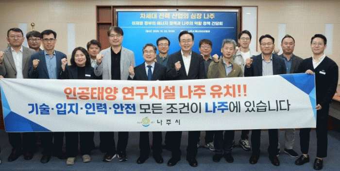 ¶ÇÇÑ ÀΰøÅÂ¾ç ¿¬±¸½Ã¼³ À¯Ä¡ Çʿ伺À» ¾ð±ÞÇÏ¸ç ¡°³ªÁÖ¿¡ ¿¡³ÊÁö °ü·Ã ±â¾÷µéÀÌ ÁýÀûȵŠÀÖ°í Àü¶ó³²µµÀÇ Áß½ÉÁö¿¡ ÀÚ¸® Àâ°í Àֱ⠶§¹®¿¡ ½ÇÁõ ÀÎÁõ ¼¾ÅÍ ±¸ÃàÀÌ Àý½ÇÇÑ »óȲ¡±À̶ó¸ç ¡°¿¡³ÊÁö °ü·Ã ±â¾÷µéÀÌ ´Ù¸¥ Áö¿ªÀÌ ¾Æ´Ñ ³ªÁÖ¿¡¼ ±â¼ú ¿¬±¸¸¦ Çϰí Å×½ºÆ®¸¦ ÇÒ ¼ö ÀÖµµ·Ï ÀΰøÅÂ¾ç ¿¬±¸½Ã¼³ÀÌ µé¾î¿Í¾ß ÇÑ´Ù¡±°í °Á¶Çß´Ù.