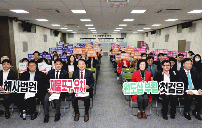 ±èÂùÁø µ¿±¸Ã»ÀåÀº ¡°¿À´Ã Åä·Ðȸ´Â ÇØ»ç¹ý¿ø À¯Ä¡¸¦ ÇâÇÑ Áö¿ª»çȸÀÇ ÀÇÁö¿Í °ø°¨ÀÌ ÇÑÀÚ¸®¿¡ ¸ðÀÎ ¶æ±íÀº ÀÚ¸®¿´´Ù¡±¸ç ¡°ÇØ»ç¹ý¿øÀº Á¦¹°Æ÷±¸ÀÇ À§»óÀ» µÇ»ì¸®°í, ¿øµµ½É¿¡ »õ·Î¿î Ȱ·ÂÀ» ºÒ¾î³ÖÀ» ÇÙ½É µ¿·ÂÀÌ µÉ °Í¡±À̶ó°í ¸»Çß´Ù. ÀÌ¾î ¡°Áֹΰú Àü¹®°¡, Á¤Ä¡±ÇÀÌ ÇÔ²² ÈûÀ» ¸ðÀº´Ù¸é Á¦¹°Æ÷±¸°¡ ´ëÇѹα¹ ÇØ¾ç»ç¹ýÀÇ Áß½ÉÁö·Î µµ¾àÇÒ ¼ö ÀÖÀ» °Í¡±À̶ó¸ç ¡°±¸Ã»¿¡¼µµ À¯Ä¡ ½ÇÇöÀ» À§ÇØ Àû±Ø ³ë·ÂÇϰڴ١±°í ¹àÇû´Ù.