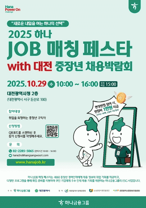 ÇÑÆí, Çϳª JOB ¸ÅĪ Æä½ºÅ¸´Â Çϳª±ÝÀ¶±×·ìÀÌ Áö³ÇغÎÅÍ Àü±¹ ÁÖ¿äµµ½Ã¿¡¼ °³ÃÖÇØ ¿Â ´ëÇ¥ÀûÀÎ ÁßÀå³âÃþ Ãë¾÷¹Ú¶÷ȸ·Î, ÁßÀå³âÃþÀÌ ÀçÃë¾÷À» ÅëÇØ Á¦2ÀÇ ÀλýÀ» ¼³°èÇϰí, Áö¿ª ±â¾÷µéÀÌ °æ·Â ÀÎÀ縦 Á÷Á¢ ¹ß±¼ÇÒ ¼ö ÀÖ´Â ÀåÀ¸·Î ÀÚ¸®¸Å±èÇϰí ÀÖ´Ù.