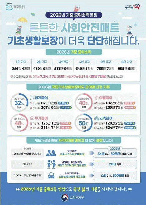 ³»³â ±âÁØ ÁßÀ§¼ÒµæÀº 4ÀÎ °¡±¸ ±âÁØ 649¸¸ 5,000¿øÀ¸·Î Àü³â ´ëºñ 6.51% ÀÎ»óµÆ´Ù. ÀÌ´Â ¿ª´ë ÃÖ´ë ÀÎ»ó ÆøÀ¸·Î, ÀÌ¿¡ µû¶ó »ý°è±Þ¿©µµ »óÇâµÈ´Ù. 4ÀÎ °¡±¸ ÃÖ´ë »ý°è±Þ¿©¾×Àº 207¸¸ 8,316¿ø, 1ÀÎ °¡±¸´Â 82¸¸ 566¿øÀ¸·Î °¢°¢ ÀλóµÈ´Ù.