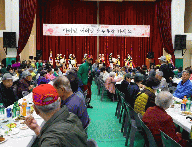 ¼ÒŸé ÁÖ¹ÎÀÚÄ¡ÇÁ·Î±×·¥ ¼ö°»ýµéÀÇ »ö¼ÒÆù, ¶óÀδ뽺 °ø¿¬ µî ½ÄÀü Çà»ç·Î Çà»çÀÇ ½ÃÀÛÀ» ¾Ë·ÈÀ¸¸ç, º»Çà»ç¿¡¼´Â Àå¼ö³ëÀÎ ÃàÇϼ±¹° Àü´Þ ¹× ³»ºó°ú ±â°ü¡¤Á÷´É´ÜüÀÇ ´ö´ã ¹× Å«Àý µîÀÌ À̾îÁö¸ç °ø°æÇÏ´Â ¸¶À½À» Ç¥ÇöÇß´Ù.
