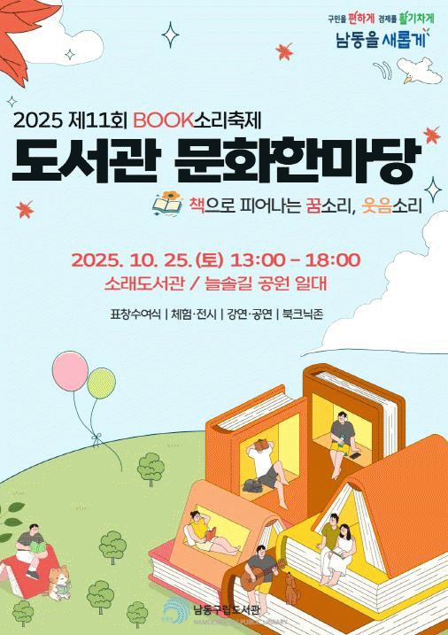 µµ¼°ü ¹®ÈÇѸ¶´ç 'BOOK¼Ò¸® ÃàÁ¦'´Â Ã¥°ú µµ¼°üÀ» ¸Å°³·Î ¼¼´ë¿Í ÀÌ¿ôÀÌ ÇÔ²² ¼ÒÅëÇÏ¸ç µ¶¼ÀÇ Áñ°Å¿òÀ» ³ª´©´Â ³²µ¿±¸ ´ëÇ¥ µ¶¼¹®ÈÃàÁ¦ÀÌ´Ù.