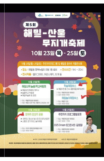 24ÀÏ¿¡´Â Çлý¡¤Çкθð¡¤Çùµ¿Á¶ÇÕ¡¤ÁÖ¹ÎÀÌ ÇÔ²² ¿î¿µÇÏ´Â 50¿© °³ üÇèºÎ½º¿Í ¸¶À» »çÁøÀüÀÌ ¿¹Á¤µÇ¾î ÀÖÀ¸¸ç, ¸¶Áö¸· ³¯ÀÎ 25ÀÏ¿¡´Â ÇØ¹Ðµ¿ ÇàÁ¤º¹Áö¼¾ÅÍ ÁÖ¹ÎÀÚÄ¡°ø¿¬À¸·Î ÃàÁ¦ÀÇ ¸·À» ³»¸± ¿¹Á¤ÀÌ´Ù.