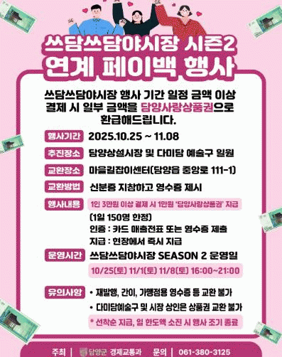 ±ºÀº ¾ß½ÃÀå ±â°£ Áö¿ª ¼Òºñ ÃËÁø°ú »ó±Ç Ȱ¼ºÈ¸¦ À§ÇØ ´Ù¹Ì´ã¿¹¼ú±¸¿Í ´ã¾ç½ÃÀå ³» ÇöÀå °áÁ¦ °í°´À» ´ë»óÀ¸·Î ÀÏÁ¤ ±Ý¾×À» ´ã¾ç»ç¶û»óǰ±ÇÀ¸·Î µÇµ¹·ÁÁÖ´Â ¡®ÆäÀ̹é À̺¥Æ®¡¯¸¦ ÁøÇàÇÑ´Ù.