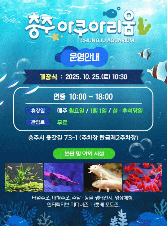 ÃæÁÖ¾ÆÄí¾Æ¸®¿òÀº ÀÔÀå·á ¹«·á·Î ¿î¿µµÇ¸ç, ¿î¿µ½Ã°£Àº È¿äÀÏ~ÀÏ¿äÀÏ ¿ÀÀü 10½ÃºÎÅÍ ¿ÀÈÄ 6½Ã±îÁö, ¸ÅÁÖ ¿ù¿äÀÏÀº ÈÞ°üÀÌ´Ù.
