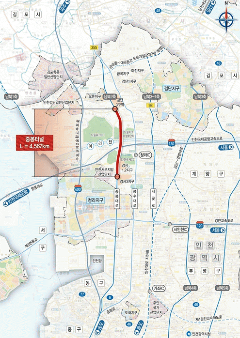 ÁߺÀÅͳÎÀÌ ¿Ï°øµÇ¸é ºÀ¼ö´ë·Î¿Í ¼°ù·Î µî µµ½É ÁÖ¿ä °£¼±µµ·ÎÀÇ ±³ÅëÈ¥ÀâÀÌ ¿ÏȵǾî Ã⡤Åð±Ù ½Ã°£ ´ÜÃà µî ½Ã¹ÎÀÇ ±³Åë ÆíÀÍÀÌ Å©°Ô Çâ»óµÉ °ÍÀ¸·Î ±â´ëµÈ´Ù.