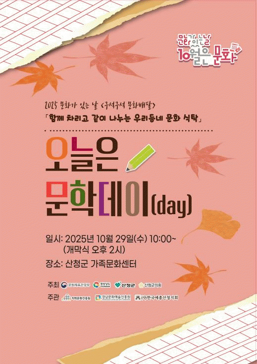 À̹ø ¿î¿µÀº ¹®ÈüÀ°°ü±¤ºÎÀÇ 2025³â ¹®È°¡ ÀÖ´Â ³¯ ±¸¼®±¸¼® ¹®È¹è´Þ »ç¾÷ ÀÏȯÀ¸·Î Áö¿ª ¹®ÇÐÀΰú ÁÖ¹ÎÀÌ ÇÔ²² Âü¿©ÇÏ´Â ¹®ÇÐ Á᫐ ¹®È ÃàÁ¦ ÀåÀ» ¸¶·ÃÇϱâ À§ÇØ ÃßÁøÇÑ´Ù.
