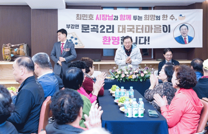 ¿ì¼± ÃÖ¹ÎÈ£ ½ÃÀåÀº 24ÀÏ ºÎ°¸é ¹®°î2¸® ´ë±¹Å͸¶À» ¸¶À»½°Å͸¦ ¹æ¹®ÇØ ÁֹΠ40¿© ¸í°ú Çã½ÉźȸÇÑ ¼ÒÅëÀÇ ½Ã°£À» °¡Á³´Ù.