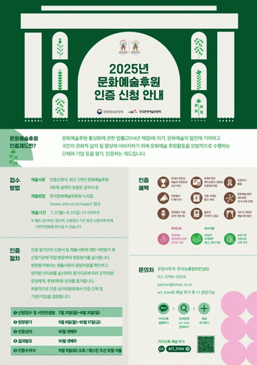 ¹®È¿¹¼úÈÄ¿ø ÀÎÁõ Á¦µµ´Â ¹®È¿¹¼ú ÈÄ¿ø Ȱ¼ºÈ¸¦ À§ÇØ ¸ð¹üÀûÀÎ ÈÄ¿øÈ°µ¿À» ¼öÇàÇÏ´Â ´Üü¿Í ±â¾÷ µîÀ» Æò°¡¡¤ÀÎÁ¤ÇÏ´Â Á¦µµ·Î, ¡ãÁ¶Á÷¿ª·® ¡ãÈÄ¿ø ¸Å°³ÇÁ·Î±×·¥ °³¹ß ¹× ÈÄ¿ø À¯Ä¡ Àü·« ¡ãÈÄ¿ø ¼º°ú µîÀÇ È°µ¿ ¿ª·®À» Á¾ÇÕ Æò°¡ÇØ ¼±Á¤ÇÑ´Ù.