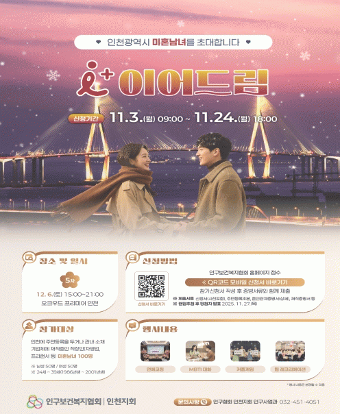 ¡®¾ÆÀÌÇ÷¯½º(i+) À̾îµå¸²¡¯Àº ÀÎõ½Ã°¡ û³âÀÇ »çȸÀû °ü°è Çü¼º ¹× °áÈ¥ Ä£È ºÐÀ§±â Á¶¼ºÀ» À§ÇØ ÃßÁøÇÏ´Â ´ëÇ¥ ¸¸³² Áö¿ø ÇÁ·Î±×·¥À¸·Î Áö±Ý±îÁö ÃÑ 360¸íÀÌ Âü°¡ÇßÀ¸¸ç, ´©Àû ½ÅûÀÚ´Â 3,857¸íÀ¸·Î Æò±Õ °æÀï·ü 10.7´ë 1À» ±â·ÏÇß´Ù.
