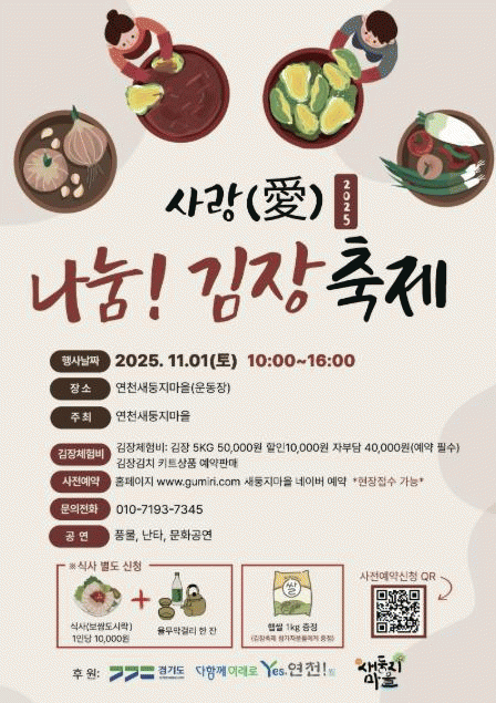 ÃàÁ¦ÀÇ ÁÖµÈ Ã¼Çè ÇÁ·Î±×·¥À¸·Î´Â ¹æ¹®°´ÀÌ Á÷Á¢ ±èÄ¡¸¦ ´ã±×°í, ¿Ï¼ºµÈ ±èÀåÀÇ ÀϺδ º»ÀÎÀÌ °¡Á®°¥ ¼ö ÀÖÀ¸¸ç ÀϺδ Áö¿ª ³» ¾î·Á¿î ÀÌ¿ô¿¡°Ô ±âºÎÇÏ´Â ¡®³ª´® ÇѸ¶´ç¡¯ÀÌ ÁغñµÅ ÀÖ´Ù. ´õºÒ¾î ¤°ø¿¹ ¡¤ ¾ç¸»¸ñ °ø¿¹ ¡¤ ͏®±×·¡ÇÇ µî ´Ù¾çÇÑ °ø¿¹ üÇè°ú ´Þ°í³ª ¸¸µé±â ¡¤ ¶±¸ÞÄ¡±â ¡¤ °¡·¡¶± ±¸¿ö ¸Ô±â µî ¸Ô°Å¸® ¹× ³îÀÌ ÇÁ·Î±×·¥µµ ¸¶·ÃµÅ ÀÖ¾î °¡Á· ¡¤ ¾ÆÀ̵é°ú ÇÔ²²ÇÏ´Â Èú¸µÇü ³óÃÌ Ã¼ÇèÀ¸·Î¼ÀÇ ¸Å·Âµµ µÎµå·¯Áø´Ù.