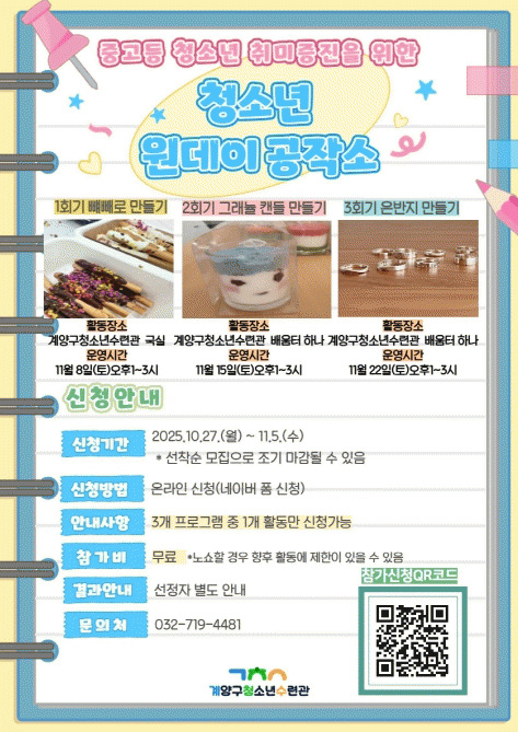 ¸ðÁý ´ë»óÀº °ü³» Áß°íµî û¼Ò³âÀ¸·Î, ÇÁ·Î±×·¥Àº 11¿ù 8ÀϺÎÅÍ 11¿ù 22ÀϱîÁö ¸ÅÁÖ Åä¿äÀÏ ¿ÀÈÄ 1½ÃºÎÅÍ ¿ÀÈÄ 3½Ã±îÁö ÁøÇàµÈ´Ù.
