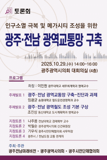 À̹ø Åä·Ðȸ´Â ±¤ÁÖ¡¤Àü³² ±¤¿ª±³Åë¸Á ÅëÇÕ Àü·«ÀÌ Áö¹æ¼Ò¸ê ±Øº¹°ú ¼³²±Ç ¸Þ°¡½ÃƼ ½ÇÇöÀÇ Ãâ¹ßÁ¡ÀÌ µÉÁö ÁÖ¸ñµÈ´Ù.