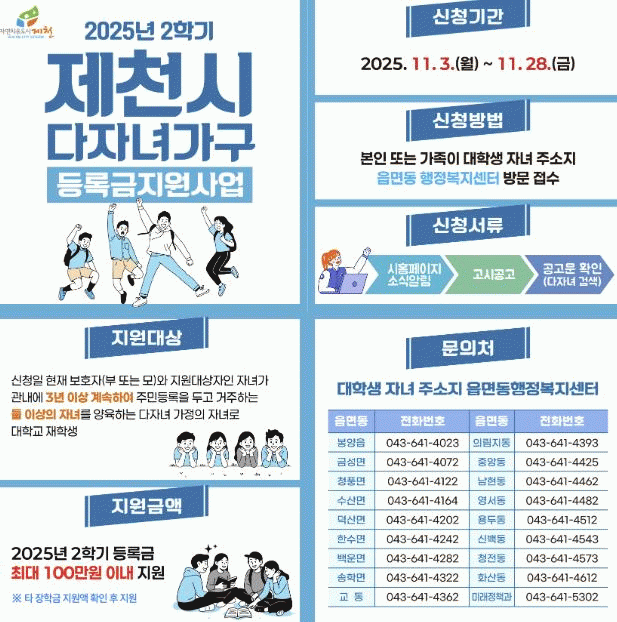 2025³âµµ 2ÇбâºÐ ½Åû ±â°£Àº 11¿ù 3ÀϺÎÅÍ 11¿ù 28ÀϱîÁö¸ç Áö¿ø±ÝÀº 12¿ù¸» Áö±ÞµÉ ¿¹Á¤ÀÌ´Ù. ½ÅûÀº ´ëÇлý ÁÖ¼ÒÁö °üÇÒ À¾¡¤¸é¡¤µ¿ ÇàÁ¤º¹Áö¼¾ÅÍ¿¡¼ °¡´ÉÇÏ´Ù.