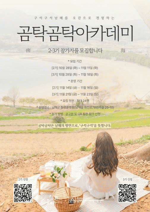 °õʰõŹ ¾ÆÄ«µ¥¹Ì 2±â´Â 11¿ù 14ÀϺÎÅÍ 16ÀϱîÁö, 3±â´Â 11¿ù 21ÀϺÎÅÍ 23ÀϱîÁö ³²Çرº â»ýÇ÷§Æû(³²ÇØÀ¾ ÈÀü·Î78¹ø°¡±æ 25-10)¿¡¼ ÁøÇàµÈ´Ù.