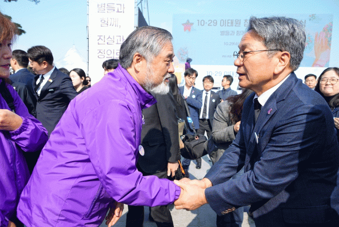 °±âÁ¤ ±¤ÁÖ±¤¿ª½ÃÀåÀº 29ÀÏ ¼¿ï ±¤È¹®±¤Àå¿¡¼ ¿¸° Á¤ºÎ ÁÖ°ü ¡®10¡¤29 ÀÌÅ¿øÂü»ç 3Áֱ⠱â¾ï½Ä¡¯¿¡ Âü¼®ÇØ Èñ»ýÀÚ 159¸íÀÇ ³ÌÀ» ±â¸®°í, ¡°´Ù½Ã´Â ÀÌ °°Àº ºñ±ØÀÌ µÇÇ®À̵ÇÁö ¾Êµµ·Ï ¾ÈÀüÇÑ »çȸ¸¦ ¸¸µé°Ú´Ù¡±°í ´ÙÁüÇß´Ù.