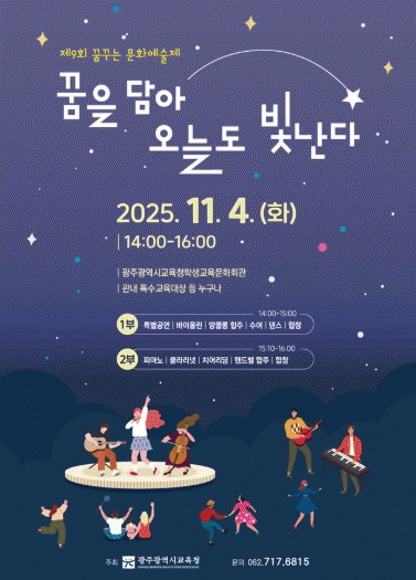 ±¤Áֽñ³À°Ã»Àº ¿À´Â 11¿ù 4ÀÏ ¿ÀÈÄ 2½Ã ½Ã±³À°Ã»Çлý±³À°¹®Èȸ°ü¿¡¼ Ư¼ö±³À°´ë»óÇлýÀÌ ÆîÄ¡´Â ¡®Á¦9ȸ ²Þ²Ù´Â ¹®È¿¹¼úÁ¦¡¯¸¦ °³ÃÖÇÑ´Ù.