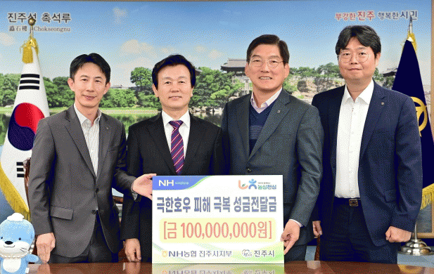 Á¶±ÔÀÏ ÁøÁÖ½ÃÀåÀº ¡°¾î·Á¿î ½Ã±â¿¡ Áö¿ªÀÇ ¾ÆÇÄÀ» ÇÔ²² ³ª´²ÁֽŠNH³óÇù ÁøÁÖ½ÃÁöºÎ¿¡ ±íÀÌ °¨»çµå¸®¸ç, À̹ø¿¡ ±âŹµÈ ¼º±ÝÀº ÇÇÇØÁֹΠÁö¿ø µî¿¡ ¼ÒÁßÇÏ°Ô »ç¿ë Çϰڴ١±°í ¹àÇû´Ù.