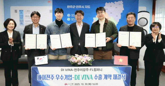 ½Ã´Â 30ÀÏ ÀüÁÖ½ÃÀå½Ç¿¡¼ ¿ì¹ü±â ÀüÁÖ½ÃÀå°ú ±è¿Ï¿± DI VINA ´ëÇ¥, ¹ÙÀÌÀüÁÖ ¿ì¼ö±â¾÷ ´ëÇ¥ µîÀÌ Âü¼®ÇÑ °¡¿îµ¥ ¡®¹ÙÀÌÀüÁÖ ¿ì¼ö¾÷ü-DI VINA ¼öÃâ°è¾à ü°á½Ä¡¯À» °¡Á³´Ù.